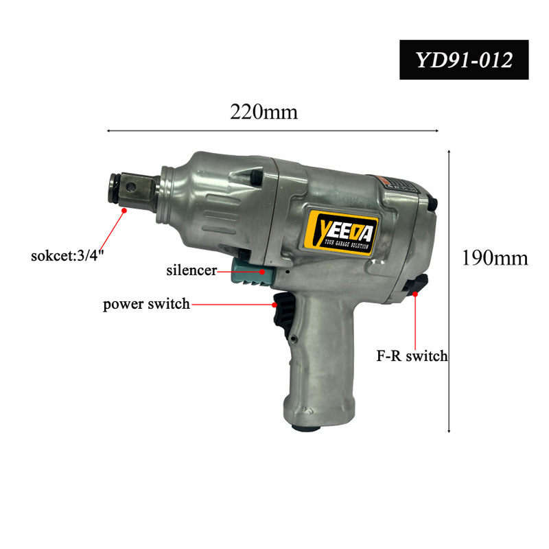Αυτό το υψηλής απόδοσης 3/4 ιντσών κλειδί πρόσκρουσης διαθέτει ένα διπλό σφυρί δομικό σχεδιασμό που παρέχει ισχυρή, σταθερή ροπή.χειρίζεται εύκολα το μεγάλο μέγεθος μπουλόνια αποσυναρμολόγηση και συναρμολόγηση.